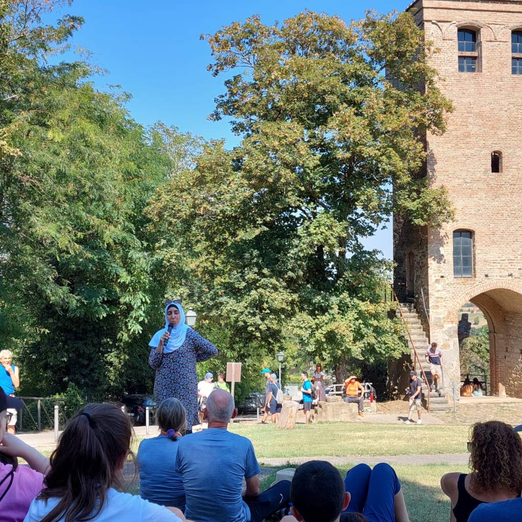 I cinque sentieri che partono dalla val di Zena nelle adiacenze del cimitero di Casola Canina convergono tutti al cimitero di Borgo San Pietro dove sono state offerte tante proposte volte alla diffusione e condivisione di aspetti culturali specifici di ciascuna realtà laica e religiosa: giochi circensi per i bambini e spettacoli di danza offerti da Chorea Danza, Alma Danza e Ruiballet. Inoltre, decorazioni delle mani con l’henné realizzate da Rahma della Comunità Islamica di Bologna, la piantumazione di due alberi dono dalla Terra Santa rispettivamente nel cimiterino di Casola Canina e in quello di Borgo san Pietro, l’intervento della Comunità ebraica progressiva di Bologna che ci ha fatto scoprire la festa di “Tu BiSvath, il capodanno degli alberi” nell’ambito della giornata della cultura ebraica (la spiegazione della festa la trovi qui), l’intervento della Chiesa Evangelica Valdese (unione delle Chiese metodiste e valdesi), l’esibizione musicale dei “Campanari Ferraresi” e la presentazione video del progetto architettonico di ristrutturazione del cimitero, disegnato dagli studenti di Unibo-Architettura insieme ai proff. Andrea Ugolini e Filippo Piva.