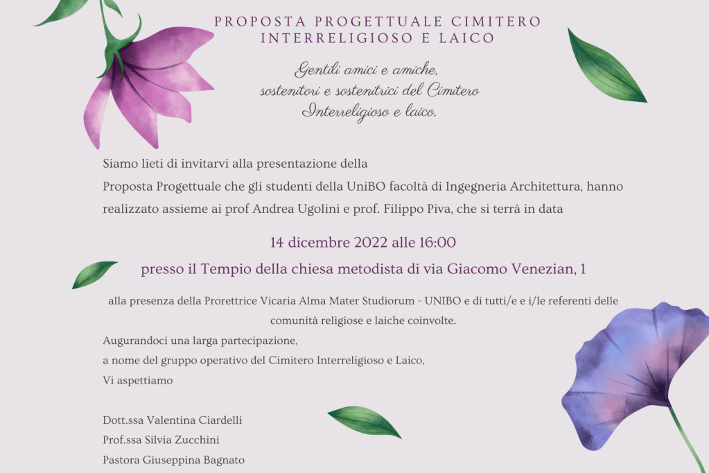 • Dicembre 2022: presentazione al Comune di Bologna e alla cittadinanza presso il Tempio Metodista-Valdese